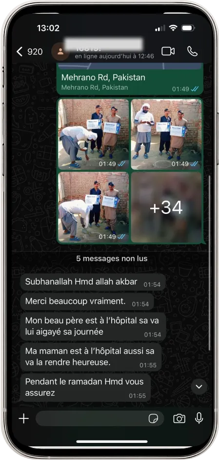 Oui, chaque puits est personnalisé avec les noms et prénoms des donateurs ainsi qu’un message personnel ou un extrait du Coran ou d’un hadith pour soutenir la population locale.