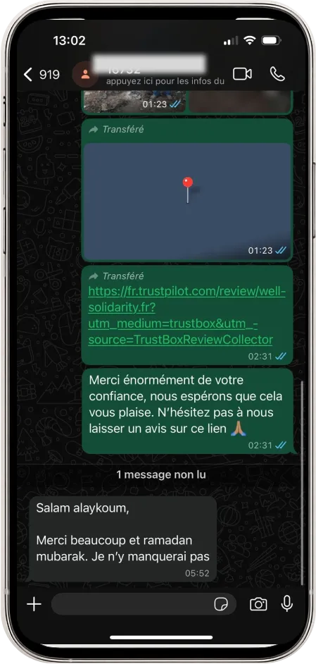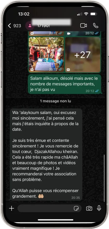 Ma sha allah j’ai réaliser un puit avec well solidarity est je ne regrette absolument pas ils sont tres serieux et a l’écoute et surtout rapide meme pas 1 mois . Vraiment merci 🤲🏻