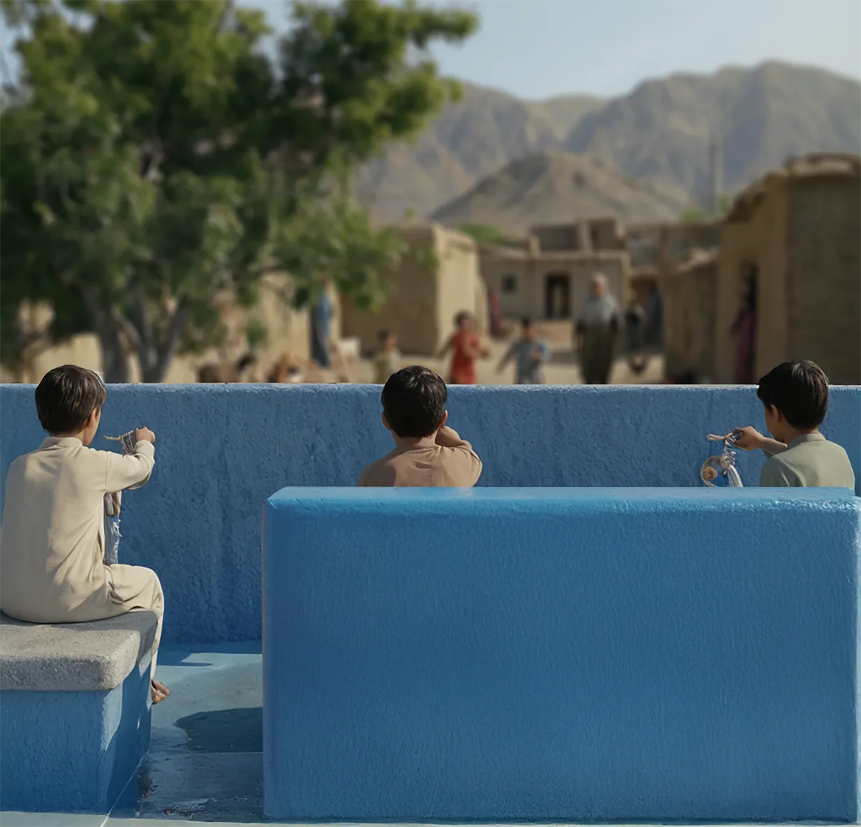 ⏱️ Durée des travaux : la réalisation complète (forage, mise en place de la pompe, installation des robinets et aménagement des assises) est achevée en moins de trois mois.